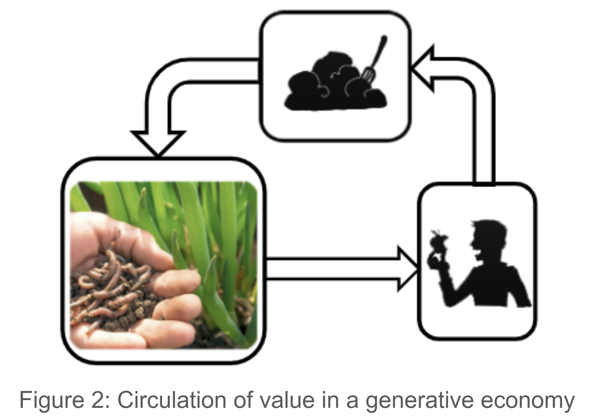 But there are many examples of systems that are highly productive, yet do not alienate value. Rather, they circulate value in unalienated forms. In organic agriculture, for example, the left-over plant materials and organic waste is used for composting, which enriches the soil, allowing it to regenerate (figure 2).